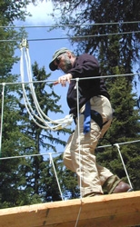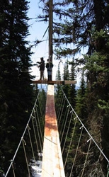 美國蒙大拿州北邊連接加拿大邊境上的冰河國家公園(Glacier National Park)對於台灣民眾而言或許比較陌生,但美國前總統柯林頓在他的自傳書「我的一生」中提到,他這一輩子所見過最美的地方就是冰河國家公園。享有「落磯山上的皇冠」之美譽的冰河國家公園,被聯合國教科文組織列為〝世界自然遺產〞。 而靠近冰河國家公園的大山(Big Mountain)渡假中心目前有一個嶄新的體驗項目,那就是長達半天/3小時的教育冒險,這項冒險活動對於經過整修過的壯觀森林和息息相關的水文生態,野生動物和植物生態系統,也就是大山渡假中心傲人的成功經驗,提供了一個獨特的觀察點。 走在樹梢上活動,剛開始會讓遊客騎一英哩的單車進入一片森林的一塊空地上。如果不想騎車,也可以搭乘機動的交通車往返,在展開行程之前,會先有一個安全講習,然後再稍微走一段路到木板路的入口,看看這段行程到底是麼樣的情形。遊客將穿上跟木板路上所懸吊的安全纜索相連的攀登安全帶。